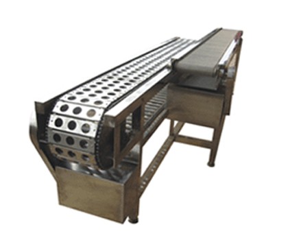 板塊式輸送機(jī)是將冰淇淋外包裝盒裝放在輸送機(jī)板塊孔內(nèi),使其口面向上整齊的緩慢向前輸送,其速度和冰淇淋機(jī)的速度相吻合,除此之外也可用作輸送其他物品。
