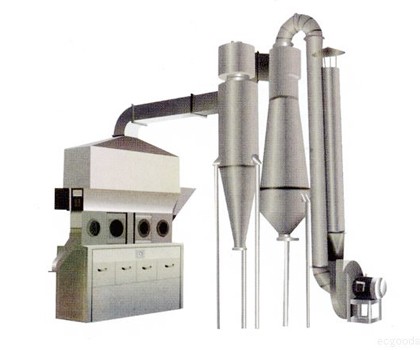 沸騰干燥器,又稱流化床,它是由空氣過(guò)濾器,沸騰床主機(jī),旋風(fēng)分離器,布袋除塵器,高壓離心通風(fēng)機(jī),操作臺(tái)組成。由于被干燥物料的性質(zhì)不同,配套除塵設(shè)備時(shí),可按需要進(jìn)行,可同時(shí)選擇旋風(fēng)分離器,也可選擇其中的一種,一般來(lái)說(shuō),比重較大時(shí)的物料只需要選擇旋風(fēng)分離器,比重較輕,較細(xì)的物料需配套布袋除塵器,并備有氣力送料裝置供選擇。