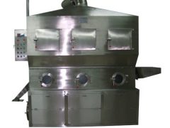 潔凈的熱風(fēng)經(jīng)閥板分配進(jìn)入床體內(nèi),從加料器進(jìn)入的濕物料被熱風(fēng)形成沸騰狀態(tài),由于與熱風(fēng)與物料廣泛接觸,增強(qiáng)了傳熱傳質(zhì)的過(guò)程,因此在較短時(shí)間內(nèi)就可干燥。從床頭一頭進(jìn)入,經(jīng)過(guò)幾十秒至幾分鐘沸騰干燥,自動(dòng)從床體另一頭流出,本設(shè)備一般進(jìn)行負(fù)壓操作。